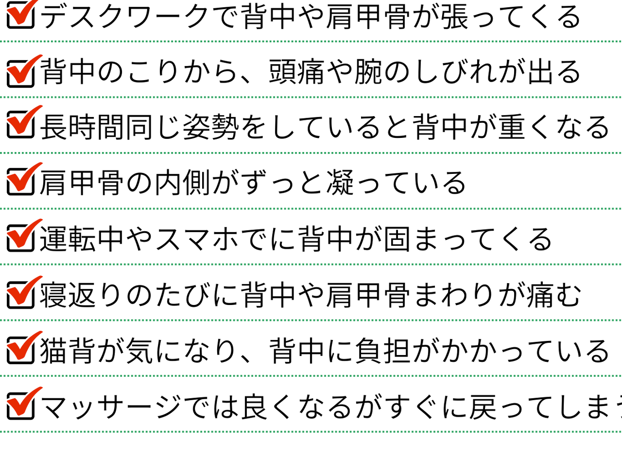 「背中痛・肩甲骨」でお悩みの方からこんなお声をいただいてます。もしあなたが当てはまるなら、今すぐ当店にご相談ください。私たちならきっとお力になれるからです。