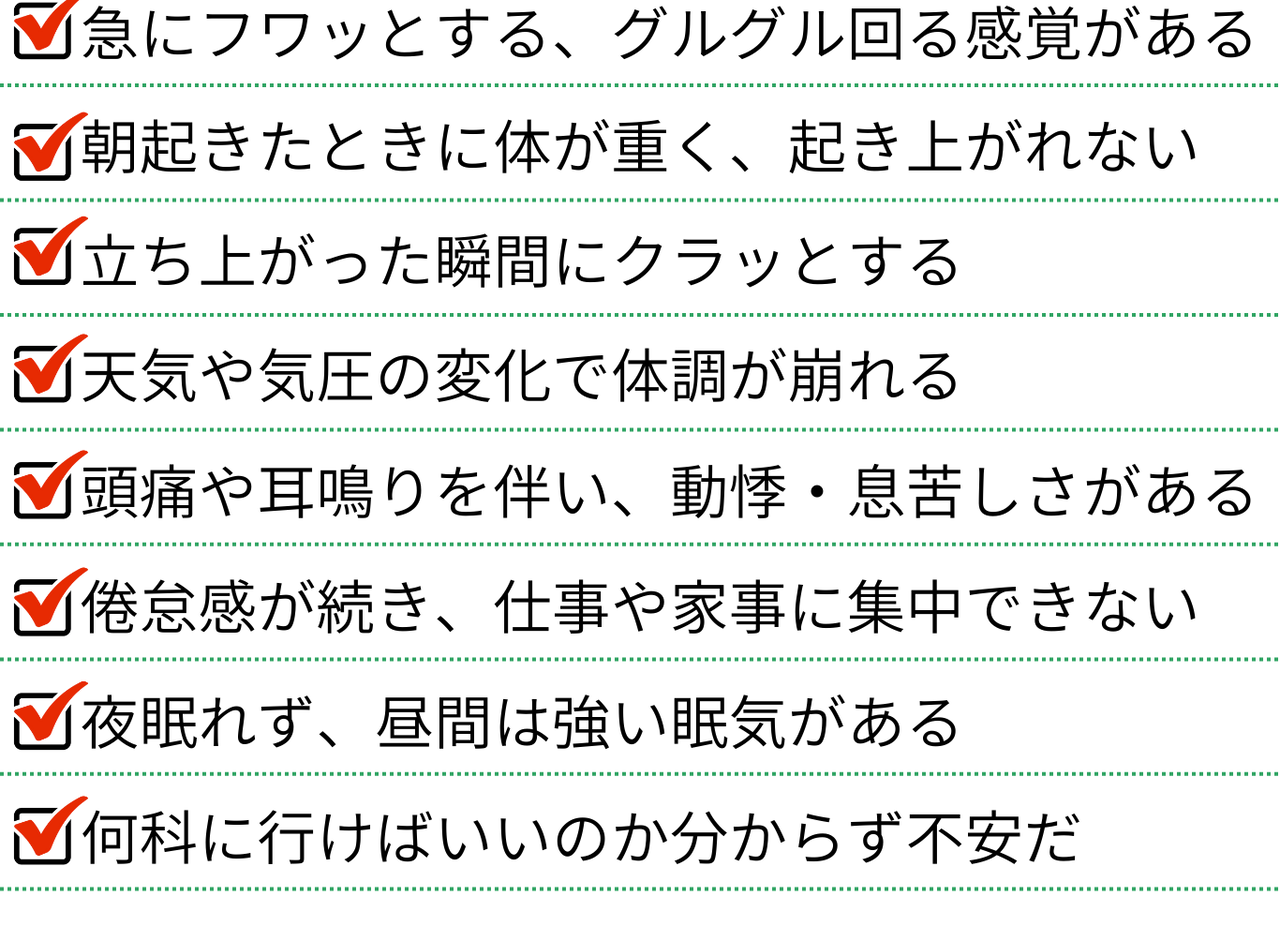 「めまい・自律神経」でお悩みの方からこんなお声をいただいてます。もしあなたが当てはまるなら、今すぐ当店にご相談ください。私たちならきっとお力になれるからです。